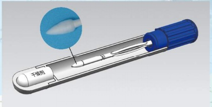 整個拭子包裝在透明塑料管中,避免生物污染。